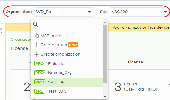 Activate and Assign a License for a Nebula Device, Site, or Organization