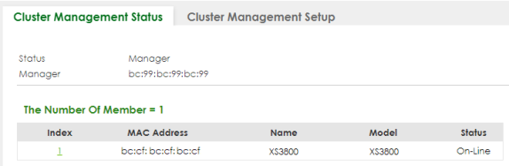 Cluster Management Status) to manage the switches within a cluster and view cluster status.
